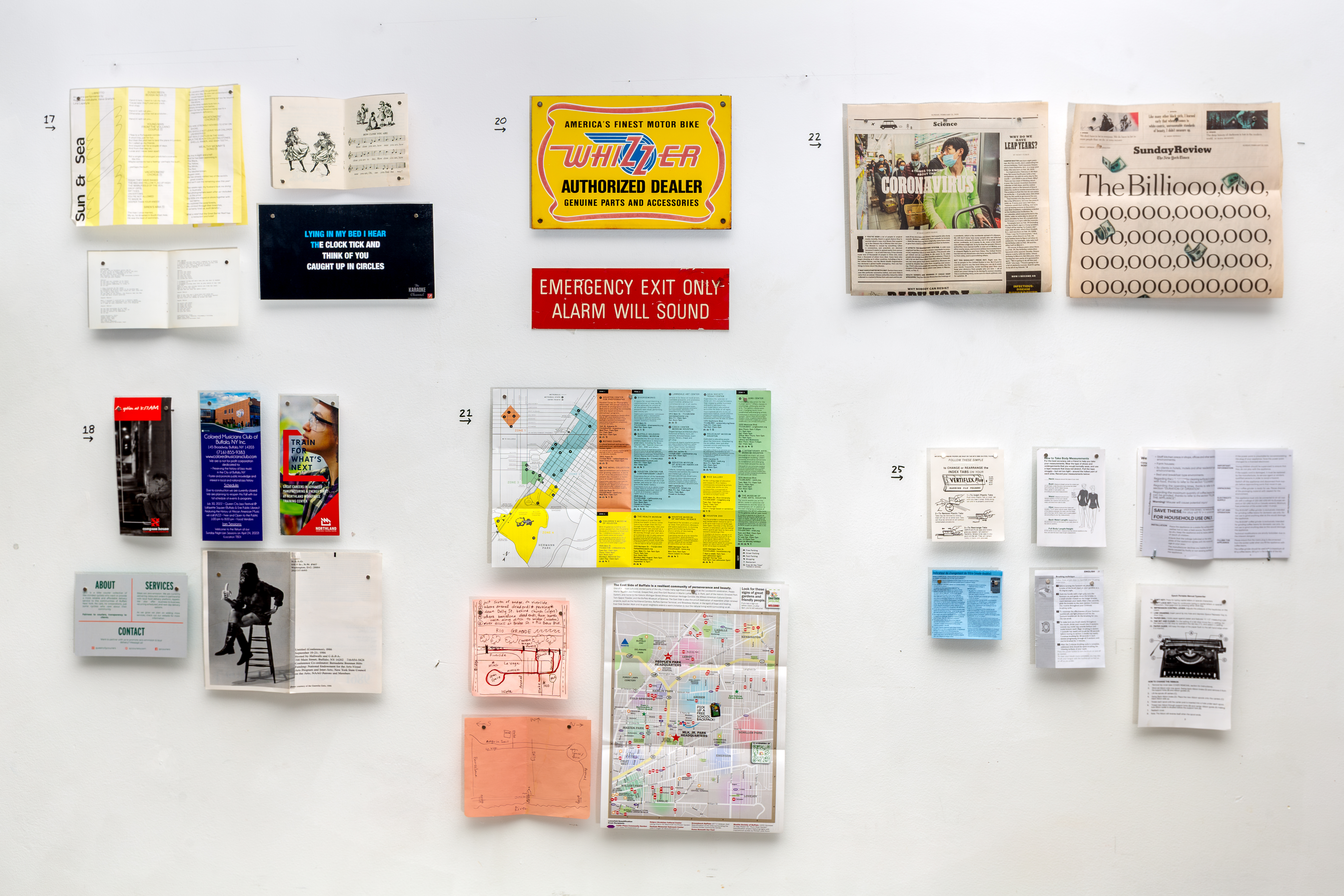 This 42’ x 11’ mural is a life-size crossword puzzle, that uses visual clues. The words are spelled faux-nettickly, allowing for a multitude of possible answers. The theme: things that require you to read. The crossword was filled out periodically throughout the duration of the exhibition. Participants were invited to solve the crossword alongside the artist.